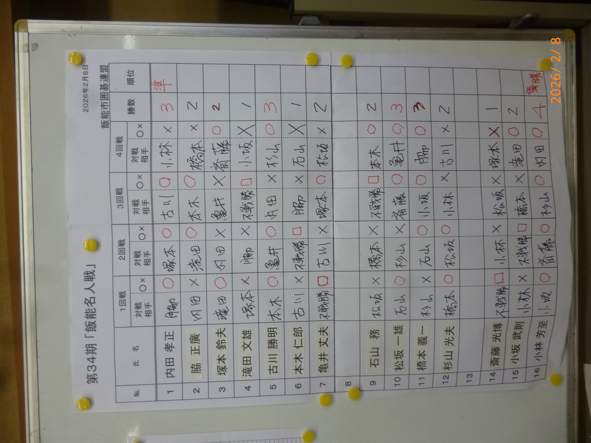 | Gクラス(互先) | 優勝 飯能・小田嶋良一 |